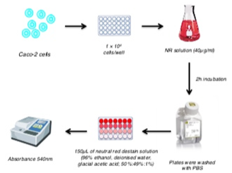 The neutral red uptake assay experiment aims at quantifying the amount of absorbed supravital dye Neutral Red (NR) in lysosomes of viable cells using a microplate spectrophotometer (Microplate Reader).